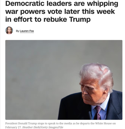 △CNN报道,民主党强力推动“战争权力决议”,希望对特朗普政府发出政治警示。