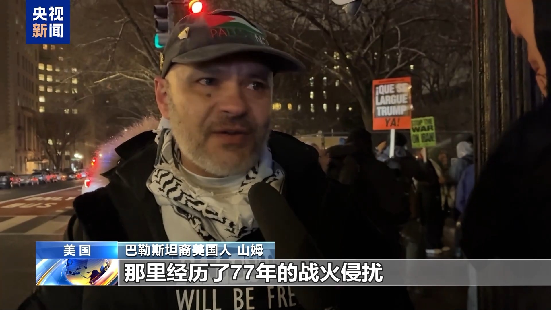 巴勒斯坦裔美国人 山姆:我来自巴勒斯坦,巴勒斯坦经历了77年的战火侵扰。现在美国政府正在发动新的战争,就像以往美国发动的战争一样。无论是伊拉克、叙利亚,还是利比亚,甚至是黎巴嫩等等国家。任何地方,只要美国发动了战争,当美国军队离开后,给所在国留下的都是内战混乱,让这个国家更加分裂,除了让那里产生纷争,没有起到任何作用。战争从来都没有带来过和平,也不会带来任何正义。正义是通过调停,让各方坐在一起,达成和平的共识。