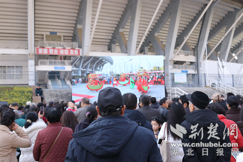 启动仪式结束后,民俗文化展演精彩开演。10支来自全市各地的民俗表演队伍依次登场。舞龙舞狮翻腾跳跃、威风锣鼓铿锵震天,采莲船、大头娃娃、蚌壳精、花伞等经典民俗表演轮番亮相,演员们身着艳丽服饰,将荆楚民俗的独特魅力展现得淋漓尽致。台下观众层层围聚、掌声雷动,拍照打卡的市民络绎不绝,广场上成了欢乐的海洋。