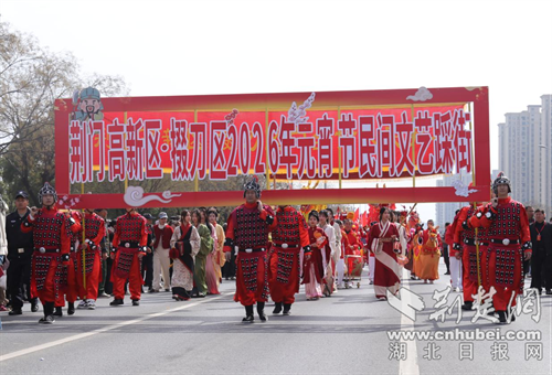 荆楚网(湖北日报网)讯(记者 安从斌 通讯员 李德银 李田瑞) 锣鼓喧天庆元宵,民俗巡游年味浓。3月3日(农历正月十五)下午,荆门高新区・掇刀区2026年元宵节文艺踩街启动仪式在掇刀区政府南楼旗杆处举行,民俗特色浓郁的文艺踩街活动如约启幕,为辖区群众送上元宵文化盛宴。