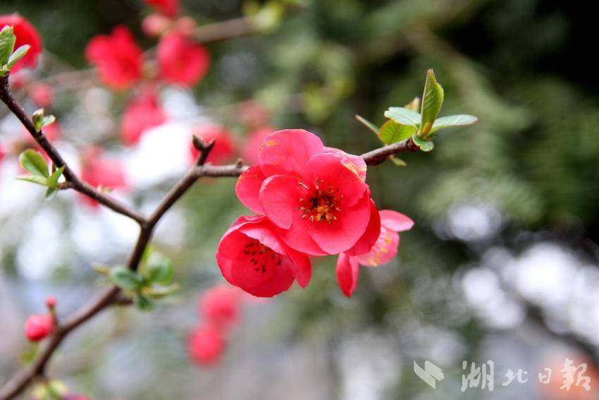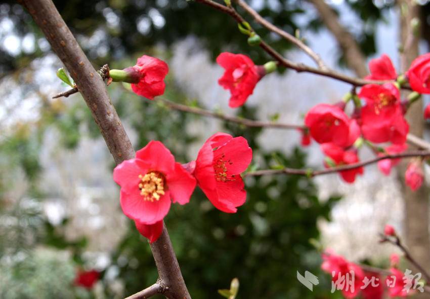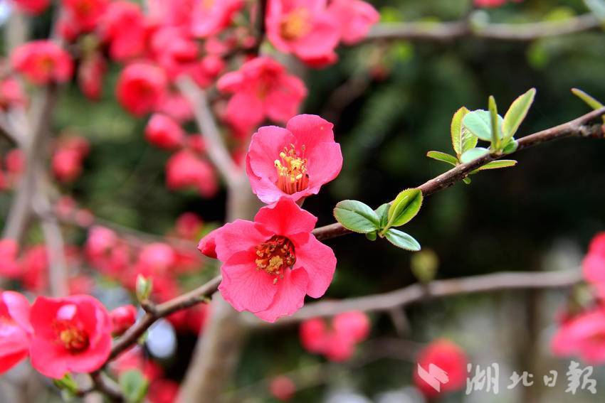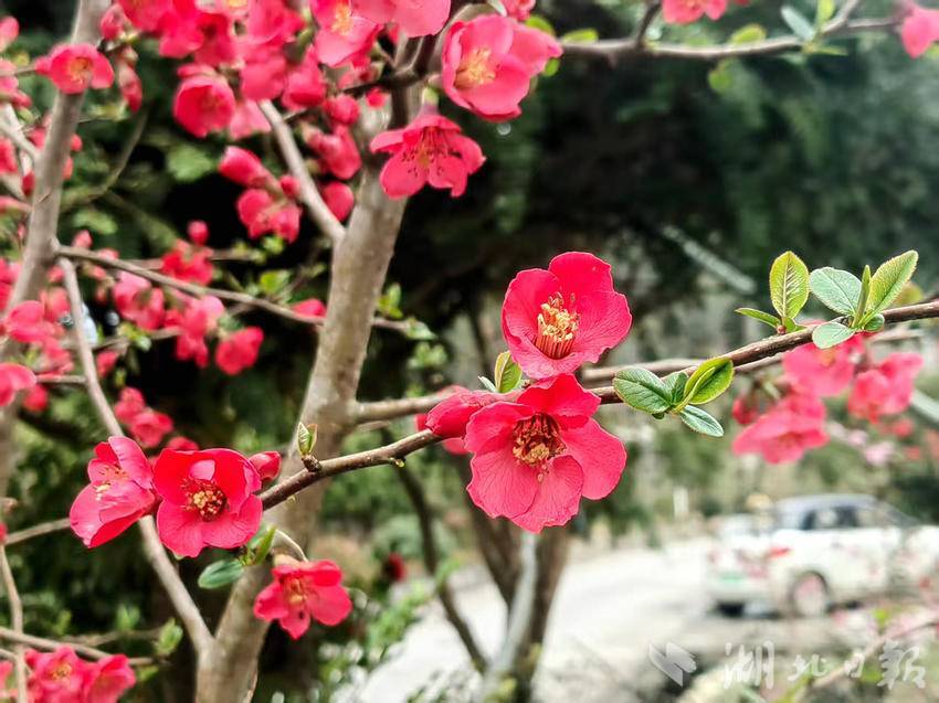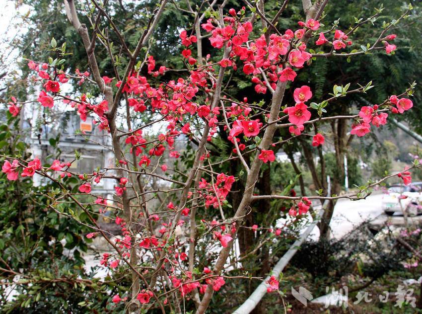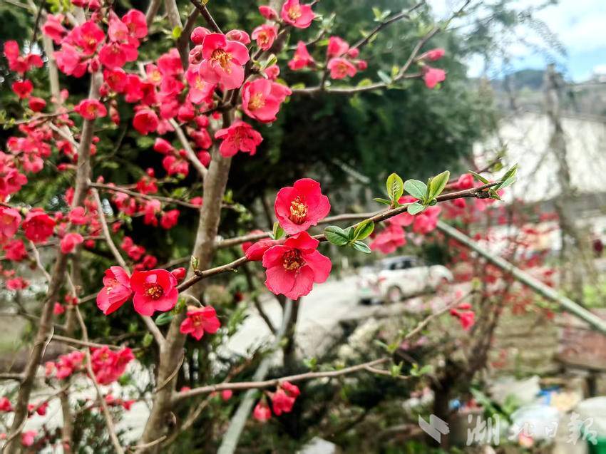 湖北日报客户端讯(通讯员胡自丹、唐和)3月3日,农历正月十五,正值元宵佳节,恩施市白杨坪镇麂子渡村的春风里裹挟着盎然生机。在乡村公路旁、农家院落边,一树树贴梗海棠迎来盛花期,为春日乡村披上了艳丽的红装。