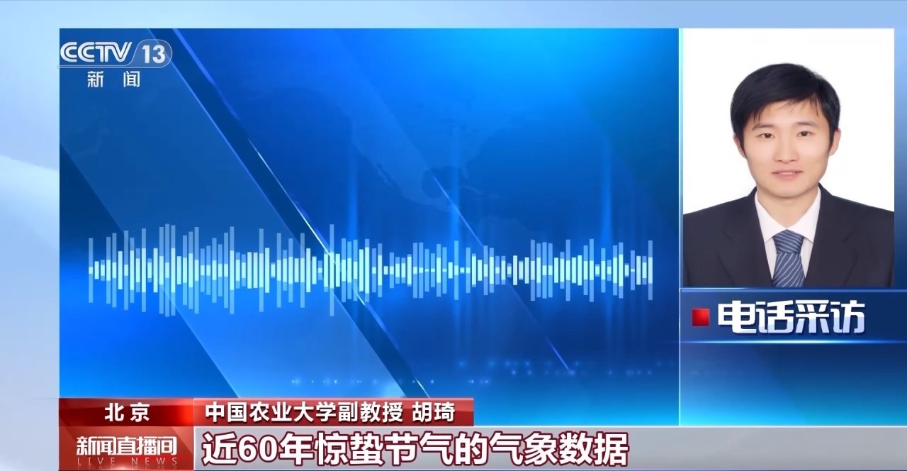 北京农业大学副教授 胡琦:我们收集了近60年惊蛰节气的气象数据,也发现惊蛰当日北风风速达到3级以上时,后续10天内出现“倒春寒”的概率将增加50%,气温也会较常年同期偏低3到5摄氏度。