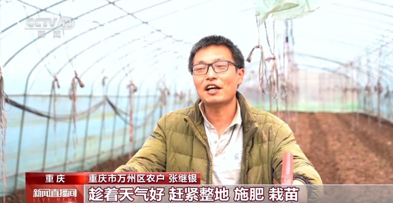 重庆市万州区农业农村委经作中心副主任 邹瑞昌:随着惊蛰节气的到来,气温正在稳步回升。万州区各蔬菜基地的菜农正在全力开展整地、开厢、覆膜、移栽等工作。