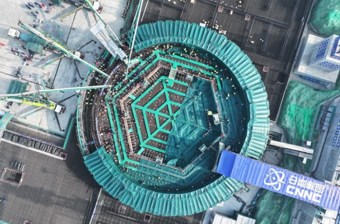 位于江苏省连云港市的江苏徐圩核能供热发电厂1号机组核岛开始混凝土浇筑,项目进入主体工程建设阶段(2026年1月16日摄,无人机照片)。这是“十五五”开局之年我国开工建设的首台核电机组。新华社记者 毛俊 摄