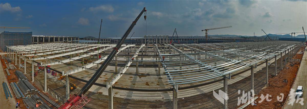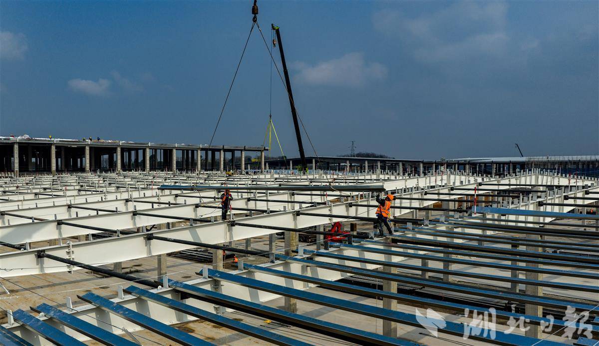 3月4日,楚能新能源宜昌二期80GWh全新一代锂电池项目建设现场一片繁忙,2051名建设者抢抓工期、全力攻坚,钢结构吊装、屋面板铺装等作业有序推进,机器轰鸣、焊花闪烁,处处洋溢着奋进的热潮。