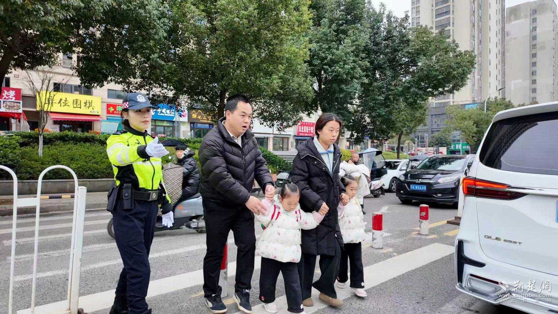 江夏区分局女子特骑队民警秦堃带领辅警,在江夏区中心幼儿园门口温柔值守,看到孩子哭闹,她轻声安抚:“宝贝别怕,幼儿园里有好多小伙伴,放学爸爸妈妈就来接你。”很快缓解孩子的入学焦虑。