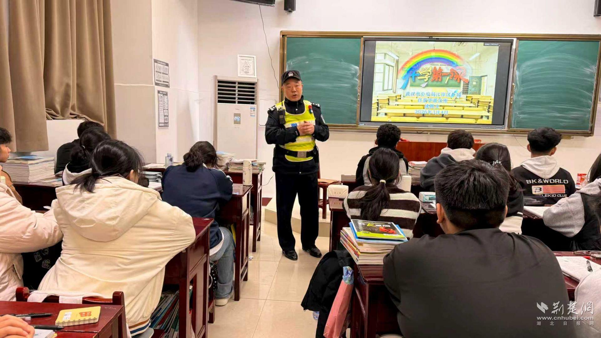 武汉公安充分发挥法治副校长作用,以“开学第一课”为契机,当日组织民警深入校园,开展交通安全、防范校园欺凌、禁毒反诈等主题宣传教育,切实提升师生安全意识和自我防护能力,为学子成长保驾护航。