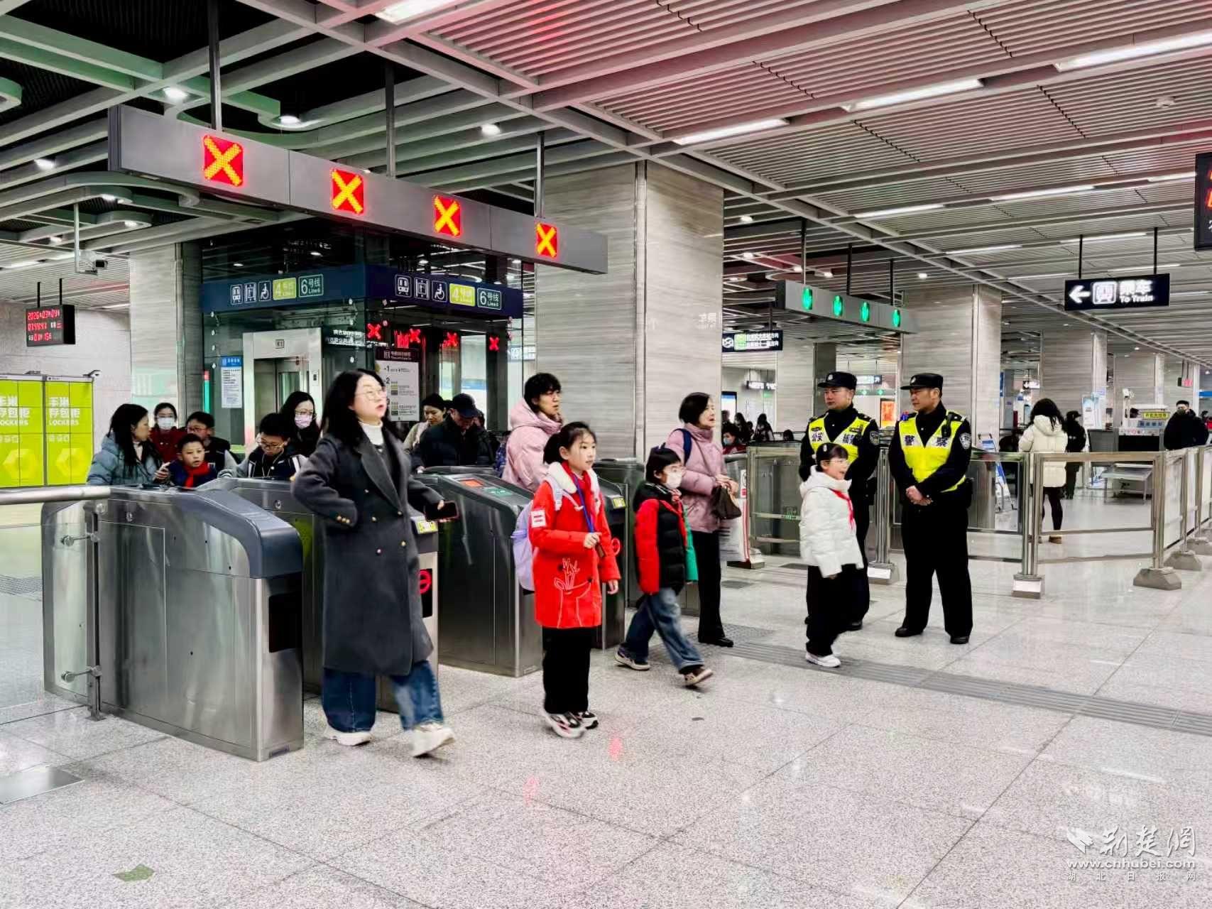 当天,轨道交通管理分局同步开启“护学模式”,结合地铁站点周边学校分布、客流特点和治安复杂程度,在钟家村、黄浦路等27个中小学、幼儿园周边地铁重点站叠加投入警力,加强巡逻值守,确保学生从“出家门”到“进校门”的全程安全。