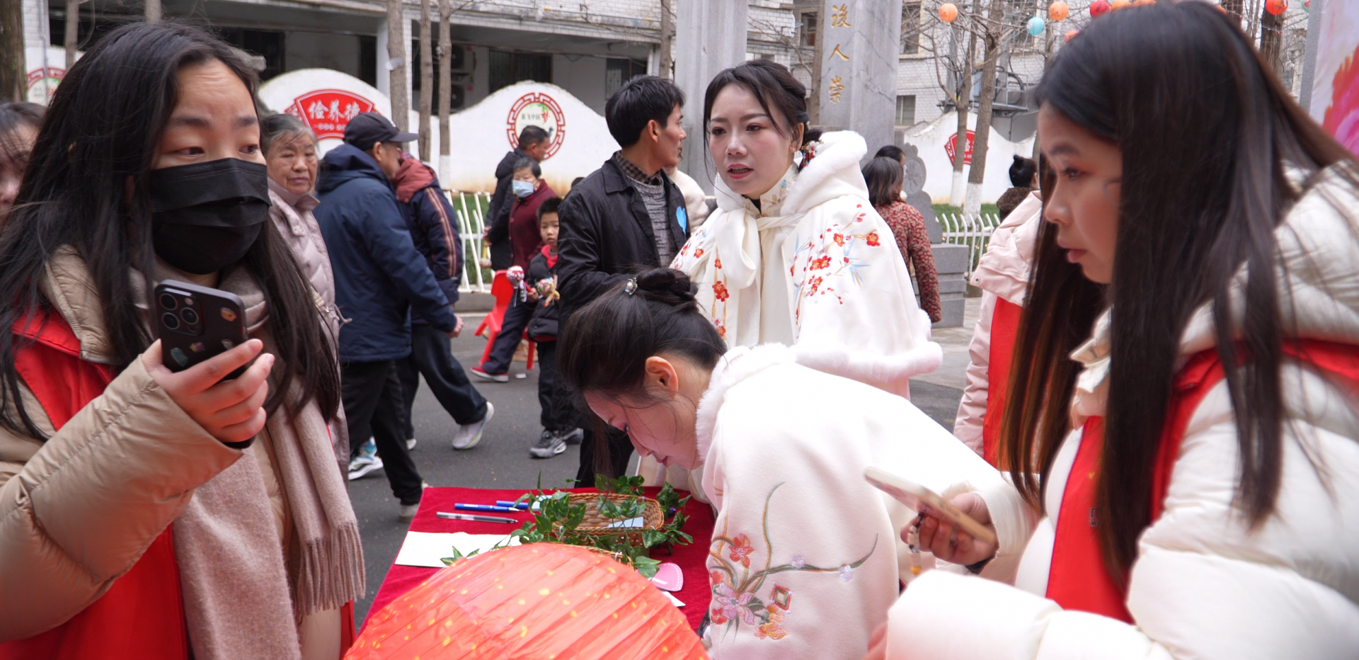 此次元宵盛宴分为猜灯谜、汉服秀、音乐会、相亲会、非遗互动等6个板块。下午3点,由近百名文化艺人组成的民俗展示队敲着锣鼓、舞着“双龙”把整个元宵节热闹氛围拉满。