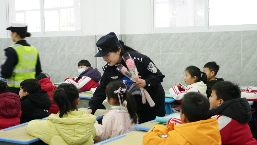 “有民警在这里护学,我们非常放心,感谢她们默默守护。今天提前收到了鲜花,很开心。”学生家长李静说。
