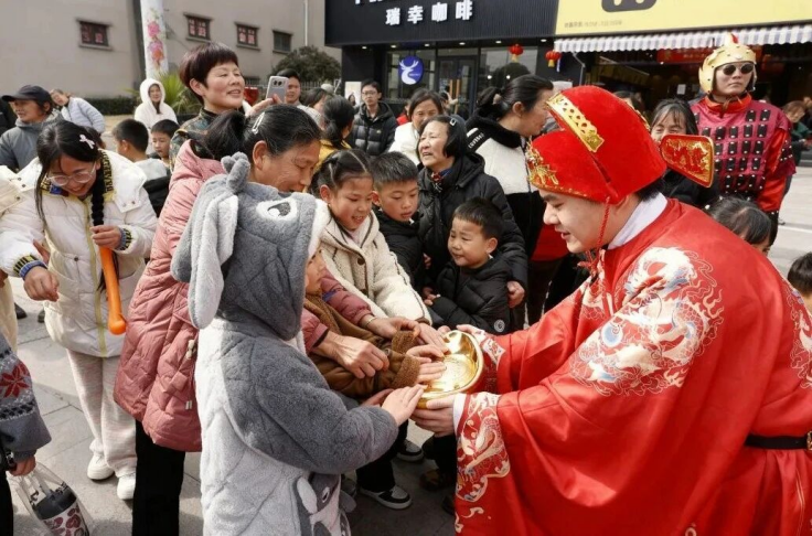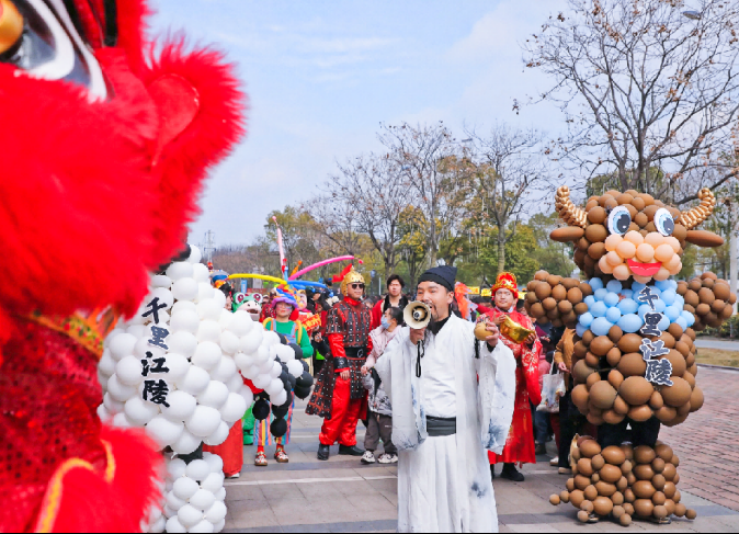 活动现场,民俗巡游队伍成为一道靓丽风景线。“李白”、汉服仙子、小丑、财神等NPC穿梭于人群之中,与市民游客近距离互动、合影留念。大家在逛、玩、赏、购的沉浸式体验中,感受传统节日的独特魅力。