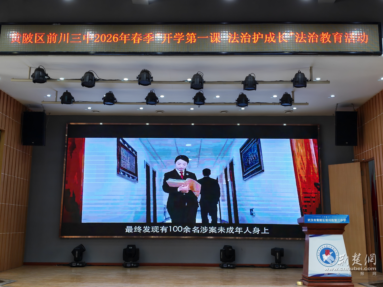 荆楚网(湖北日报网)讯(通讯员 王鹤翔)春启新程风送暖,法润青春护成长。为筑牢青少年健康成长法治屏障,3月4日,黄陂区2026年春季“开学第一课”法治教育活动在前川街第三中学启动,活动由黄陂区委依法治区办、区法学会、区司法局、区教育局共同举办。