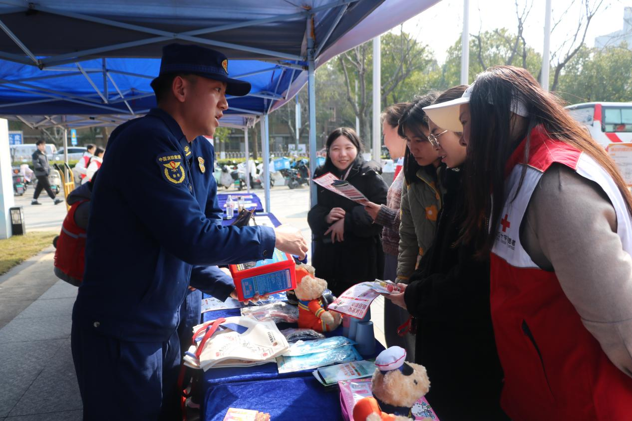 “奶奶,您看,这种插座千万不能同时连接大功率电器,很容易短路。”“您好,这是我们的消防安全宣传资料,里面有日常用火注意事项,带一份回家给家人看看。”活动现场,消防员和志愿者热情地向过往群众发放图文并茂的消防宣传单和印有消防提示的围裙、购物袋等文创礼品。