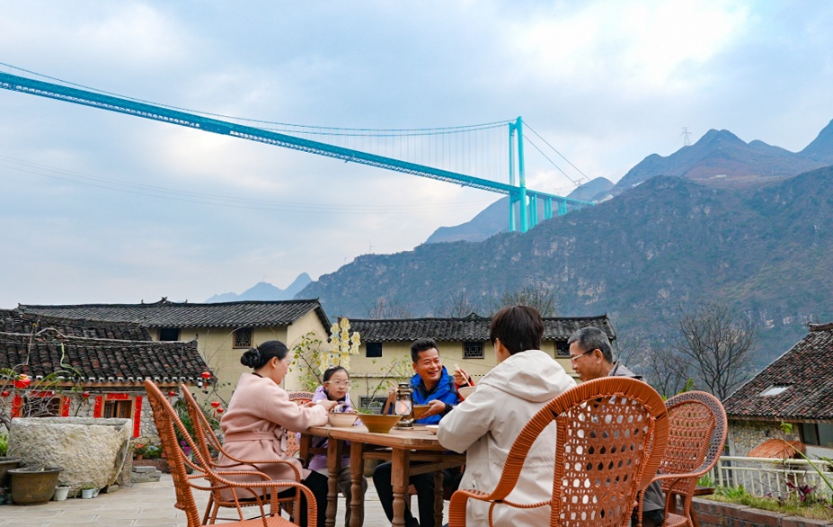 花江峡谷大桥通车次日,集“桥梁观光+桥梁运动体验+旅游服务”于一体的桥旅融合综合体正式运营。