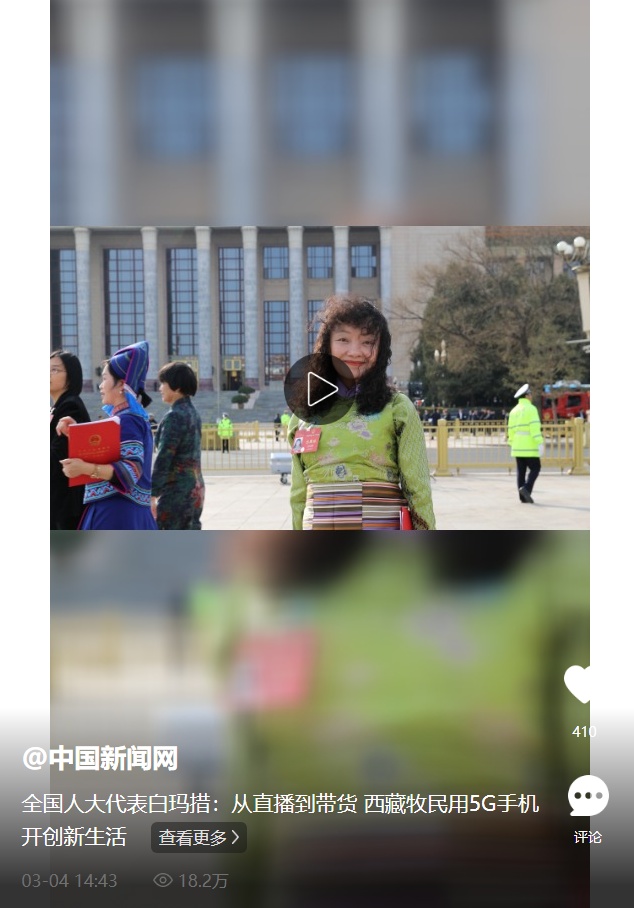 她说,“那曲的很多牧民用上了5G手机,他们喜欢在放牧时拍短视频记录生活。”“有牧民通过直播出售自己挖的虫草,在拉萨买了新房子,改善了全家的生活。”