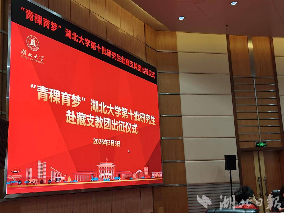 湖北日报讯(记者李玉麟、通讯员韩烨丹)在3月5日“学雷锋日”这个充满志愿精神的日子里,湖北大学第十批研究生赴藏支教团出征仪式在该校会议中心思齐厅举行。12名研究生志愿者整装待发,即将奔赴西藏自治区山南市东归中学开展支教工作。该校党委书记谢红星出席仪式并讲话。