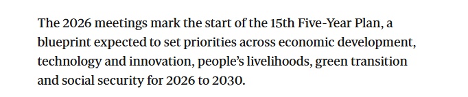 报道援引亚洲协会政策研究院中国分析中心研究员尼尔·托马斯的分析表示,今年中国两会的主题将是延续与巩固。中国将坚持其发展议程,在追求稳健增长的同时聚焦科技自主创新。他认为,“十五五”规划将标志新的增长模式的转变。