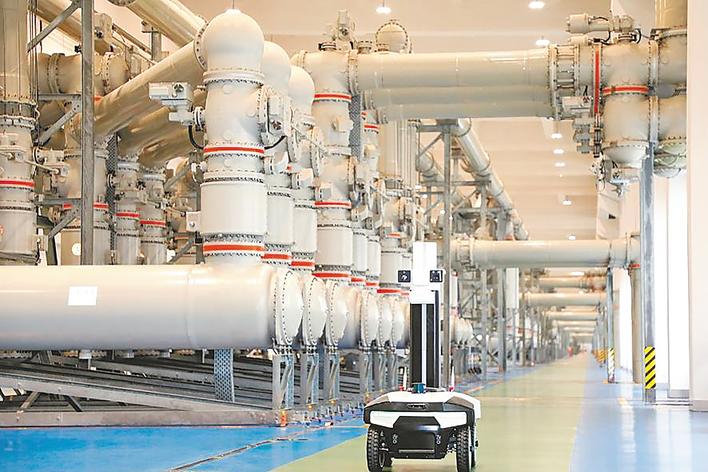 “健行者”500千伏GIS智能巡检机器人在三峡电站左岸厂房进行巡检。(湖北日报通讯员 饶家华 摄)