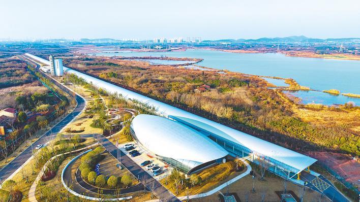 航拍湖北东湖实验室“一公里高速磁悬浮测试线”。 (湖北日报全媒记者 魏铼 摄)
