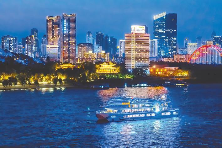 武汉首艘大型纯电池动力船“长江荣耀”轮在长江上航行。(本报资料图片)