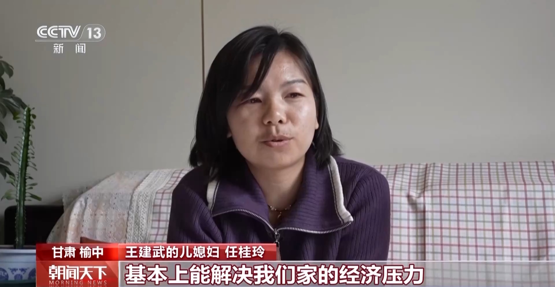 王建武的儿媳妇 任桂玲:政府给我安排的就是公益性岗位,环境卫生维护工作就在家门口工作,也不是特别累,而且工资一个月是2130块钱,基本上能解决我们家的经济压力。