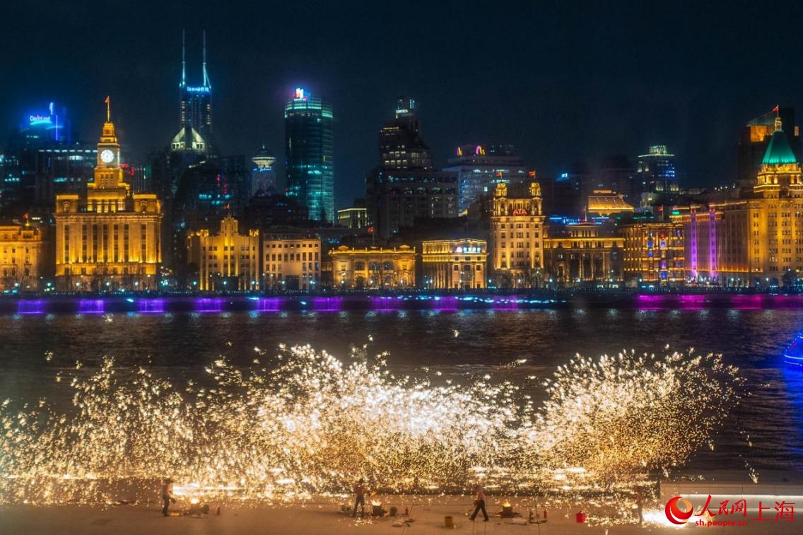 黄浦江畔上演非遗技艺打铁花。人民网记者 王初摄