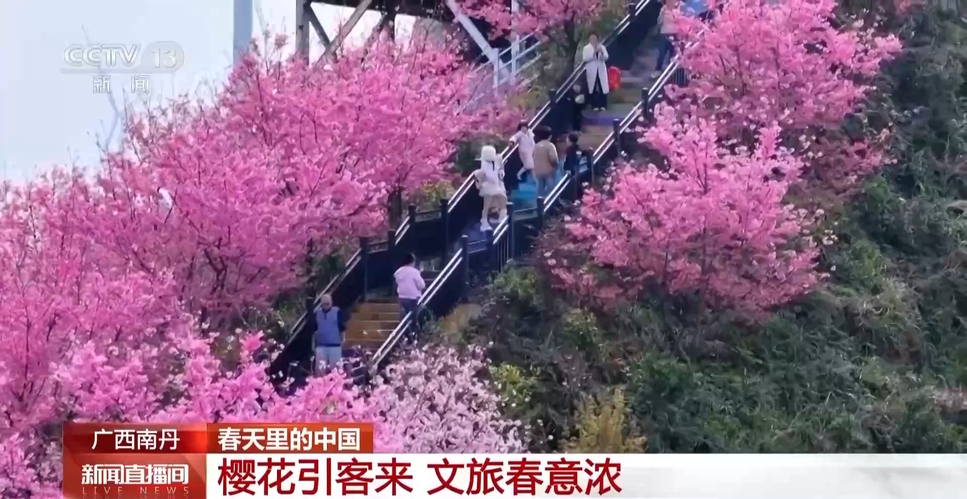 三月春风暖,樱花次第开。近日,广西河池市南丹县云观天景区的樱花进入盛花期。