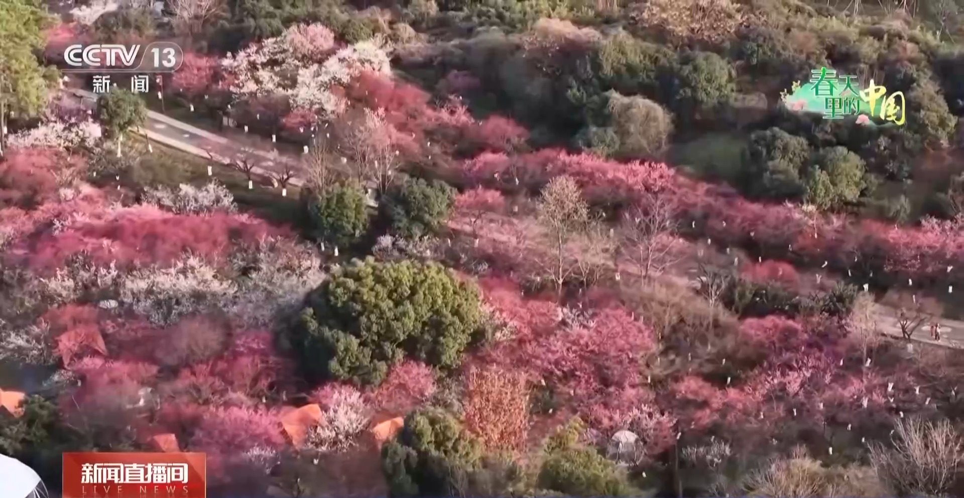 在浙江杭州的这片梅海,游人如织。抬眼望去,粉白相间的花朵层层叠叠。枝头繁花尽情绽放,微风拂过,梅香溢满山间。游客们漫步花海,拍照打卡,用镜头记录下春日的美好瞬间。