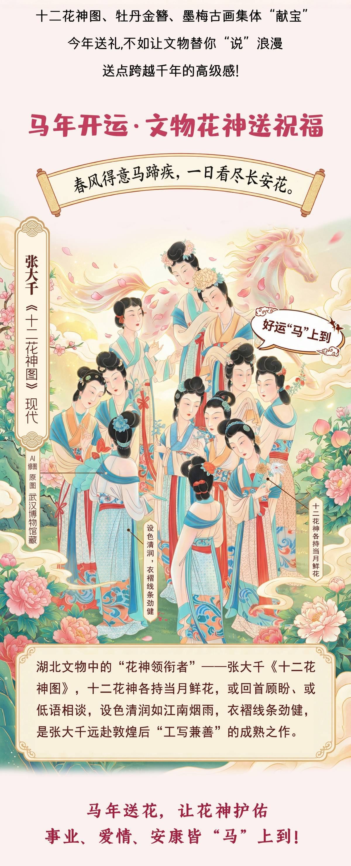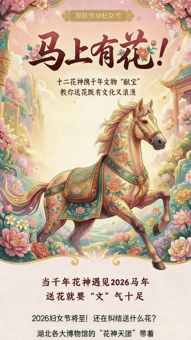 妇女节将至!还在纠结送什么花?湖北各大博物馆的“花神天团”带着十二花神图、牡丹金簪、墨梅古画集体“献宝”——今年送礼,不如让文物替你“说”浪漫,送点跨越千年的高级感!
