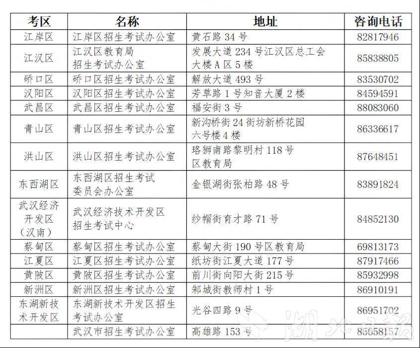 报名期间各高中学校接受本校在校学生咨询与服务(各高中学校教务部门),各区招考办负责本考区内社会考生咨询服务(详见下表)。