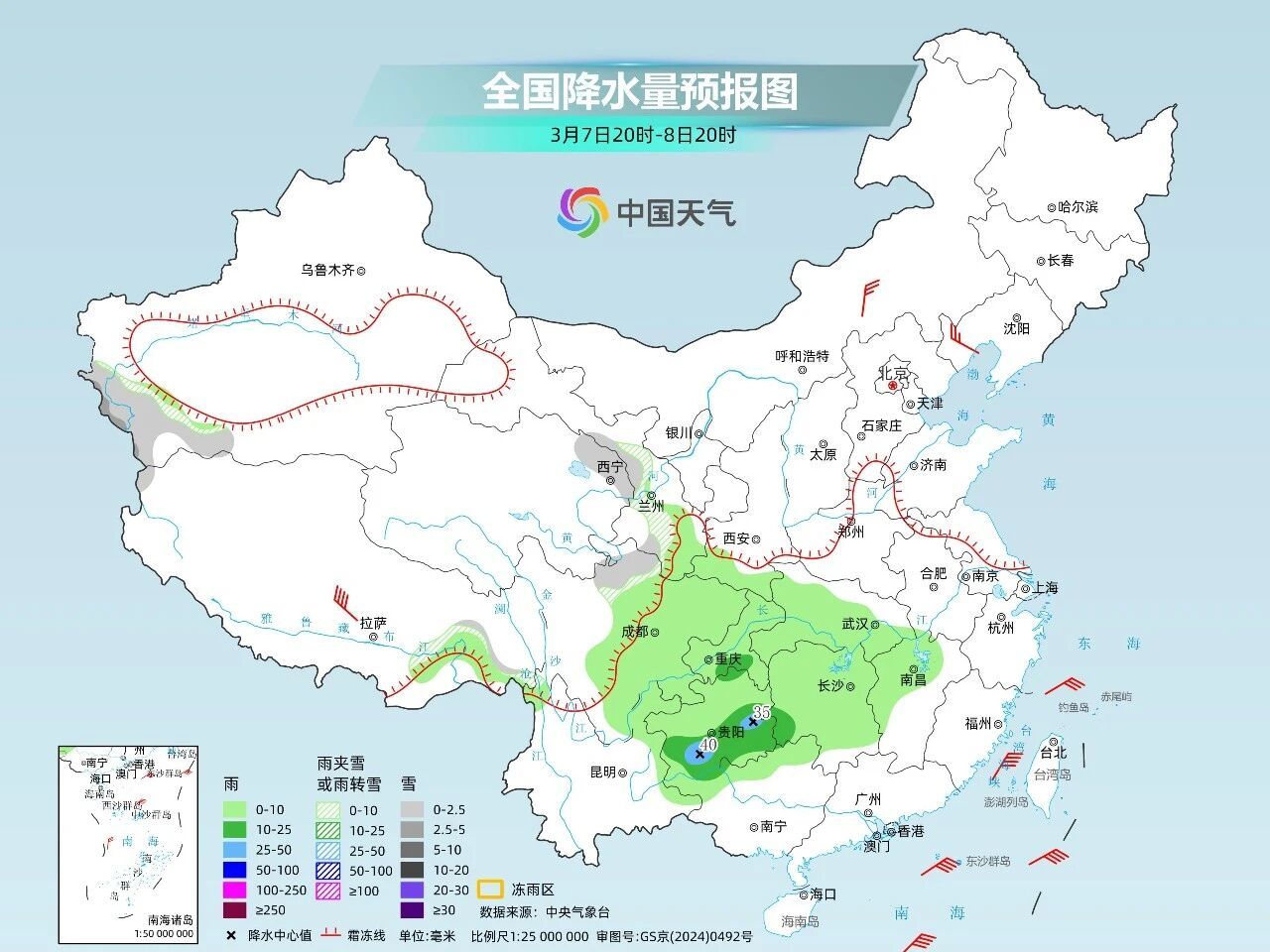 周日起,贵州将成为降雨的核心区域,多地将会有中雨,局地大雨。南方的降雨还可能扩展到江西、广西北部等地。