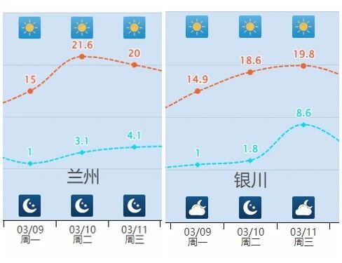西北地区的暖意更是明显,部分地区暖得同期少见。兰州10日最高气温可达22℃,这样的温暖在3月上旬是少见的。银川11日最高气温也将达到20℃,西宁11日17℃,气温都像是按下了快进键。