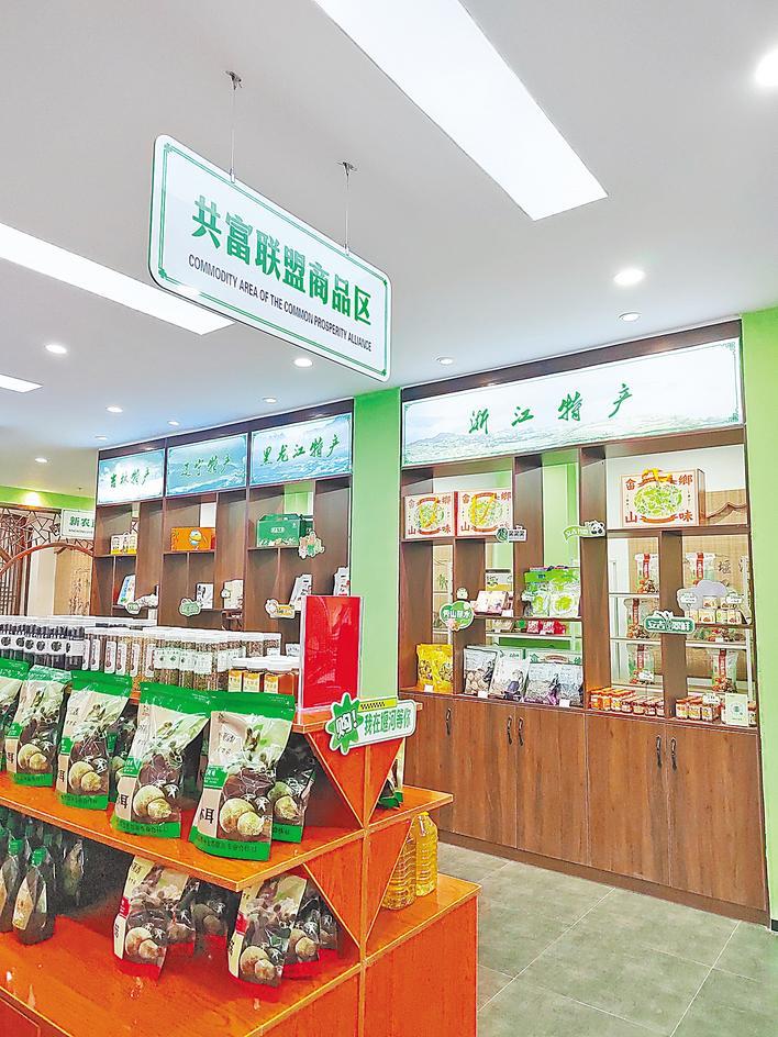 下图:堰河村的共富超市2号店内,展示着6省21地的直销土特产。(受访者供图)