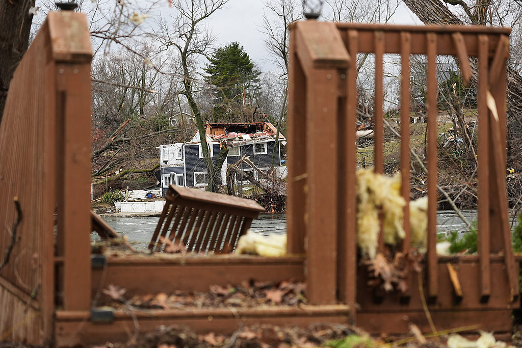 △当地时间3月7日,美国密歇根州,强风暴席卷该地区后留下的废墟。