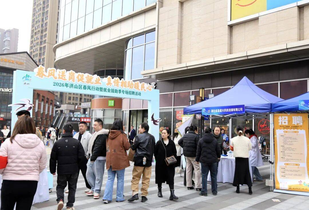 湖北日报客户端讯(肖满、胡权、肖啸龙)3月6日,“春风送岗促就业 真情相助暖民心”——2026年洪山区春风行动暨就业援助季和平街金地广场专场招聘会举行。洪山区人力资源局聚焦一季度“开门红”十大行动,为企业和求职者搭建对接平台,为区域就业市场注入新活力。