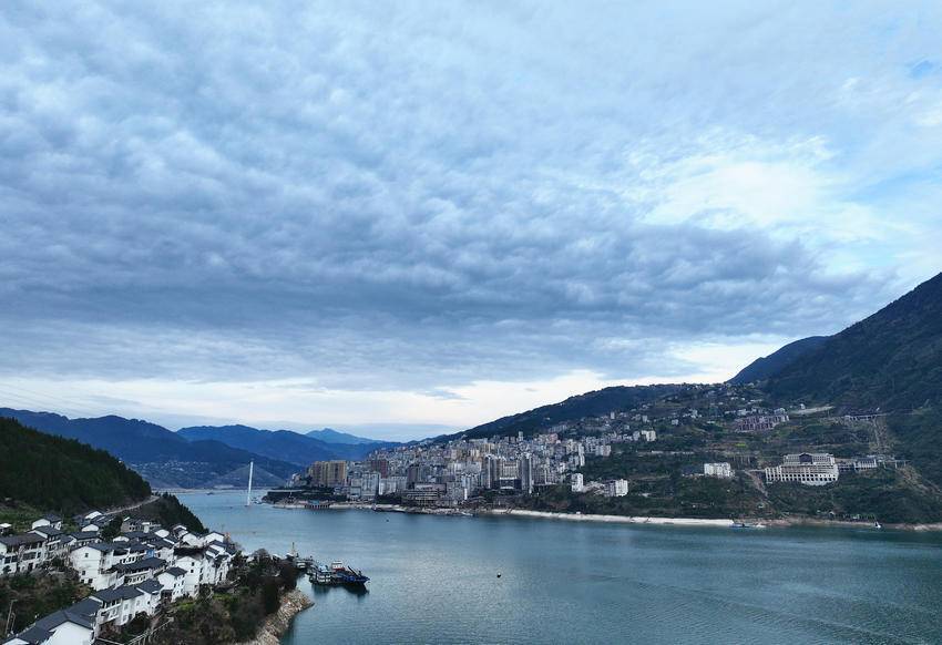 江风卷着云雾在巫峡口翻涌,像袅袅炊烟和青纱帐一般。影影绰绰的群山像一位睡意未醒的仙女,披着蝉翼般的薄纱,耐心等待天空深情的呼唤与告白。山脚下的巴东县城,山峦叠翠,云絮如烟纱般轻覆天际,在春风中翻涌出深浅不一的纹路和造型,宛如画家泼墨,坐享其成如诗如画的长江巫峡宁静与自然人文之美韵。