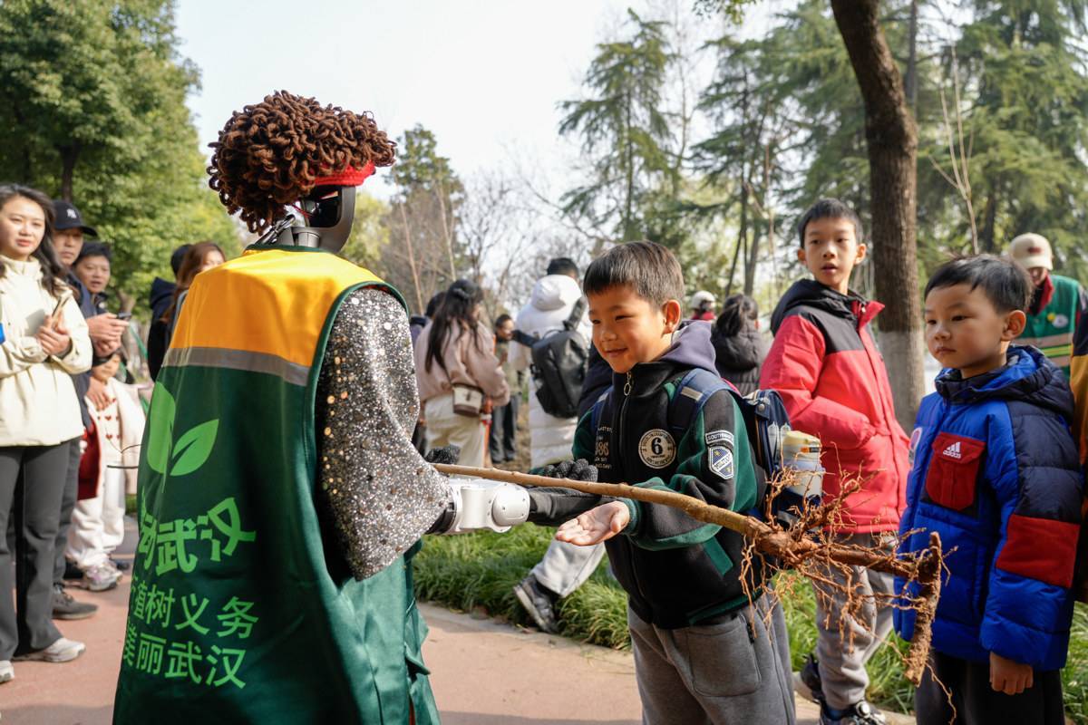 湖北日报讯(记者张竞恒、通讯员费帆、魏昌芸)三月春风至,绿动赴新约。随着武汉市2026年全民义务植树活动启动,3月7日,一场以“智植未来,播种新绿”为主题的植树特色活动在武昌区紫阳公园正式开启,120余名市民在这里栽下树苗,为江城再添新绿。春晚同款网红智能机器人“豆皮”,以“特别志愿者”身份亮相活动现场,能说会道、能唱会跳的萌趣特质,被孩子们围得水泄不通,成为全场焦点。