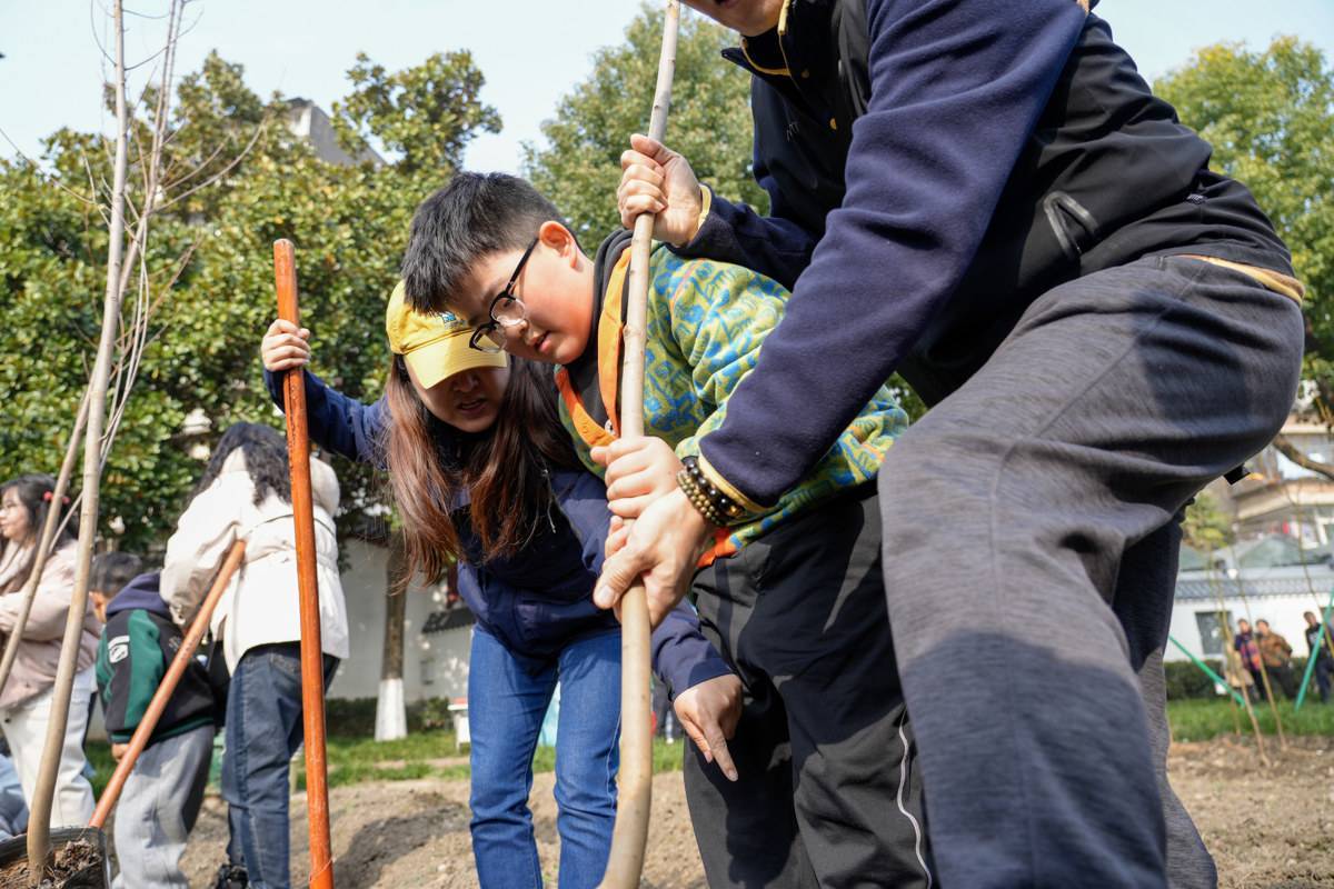 “本次活动种植的树苗以乌桕、红枫为主,这些树种适应性强、观赏价值高,预计清明前后陆续发芽展叶。”紫阳公园管理处技术人员李峻介绍,当天有40余组家庭参与活动,共种下各类树苗60余株,这片由孩子们亲手栽种的树林,未来将成为紫阳公园独特的绿色风景线。