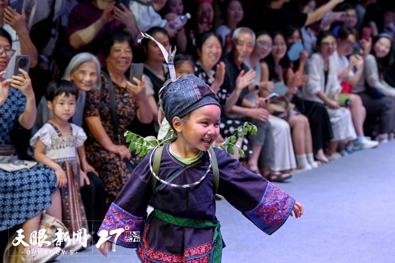 杨佳羽与舞台结缘,始于2024年4月的贵州“村T”。彼时年仅4岁的她,身着亲手参与绣制的瑶族盛装,走上凯里苗侗风情园T台,眼神一下子亮了起来。“我在走秀的时候,他们都给我鼓掌,我很开心。”杨佳羽语气认真,“我想让更多人知道我是瑶族,来自贵州麻江。”