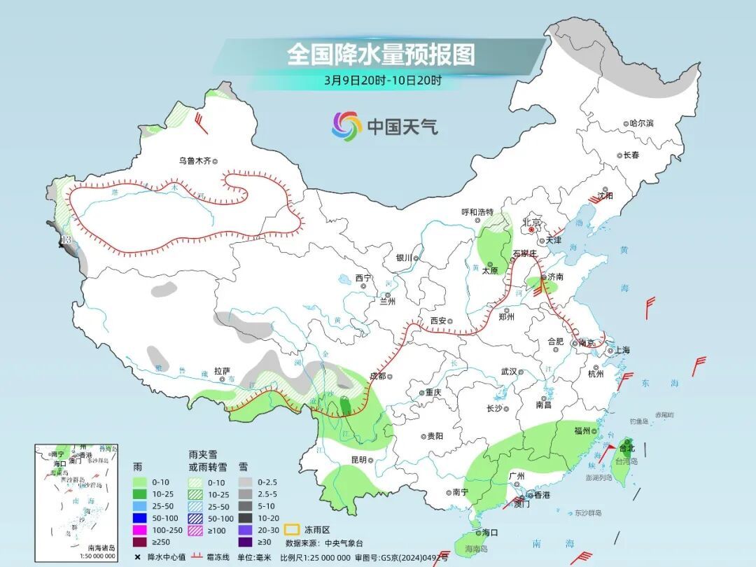 不过,随着冷空气的到来,10日起新疆的雨雪开始增多。之后冷空气东移并配合明显的暖湿气流,西北、西南至华北、东北将迎来一轮大范围的降水过程。