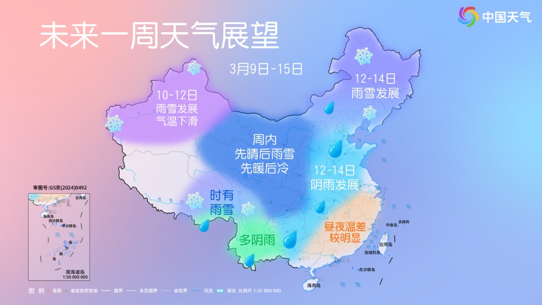 由于时效较远,雨雪落区还会有调整,大家留意临近最新预报。