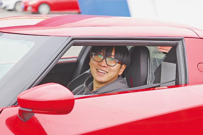 3月5日,在仙桃高新区,冯晓彤驾驶工匠派小跑车SC01从测试跑道飞驰而过,电机高频转速带来的轰鸣穿透春风,声声悦耳。