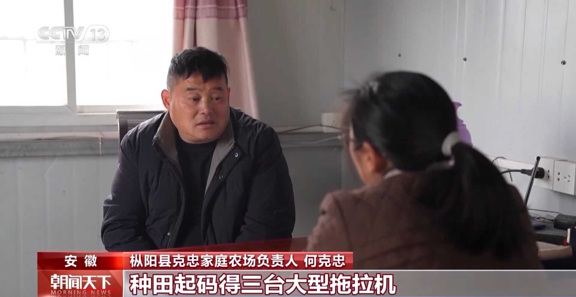 枞阳县克忠家庭农场负责人 何克忠:种田起码得三台大型拖拉机,无人机起码要一台至两台,承担的经济压力太大。