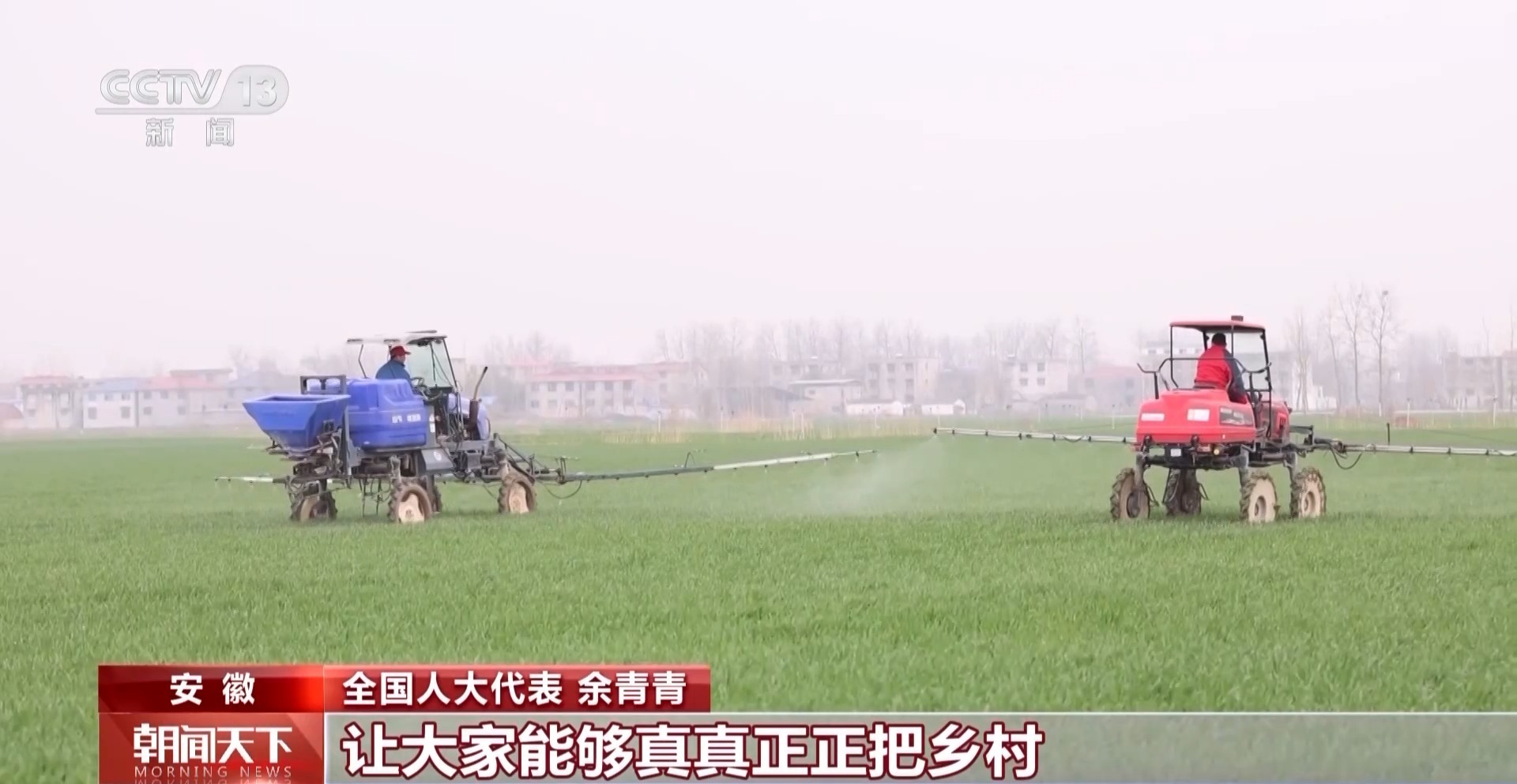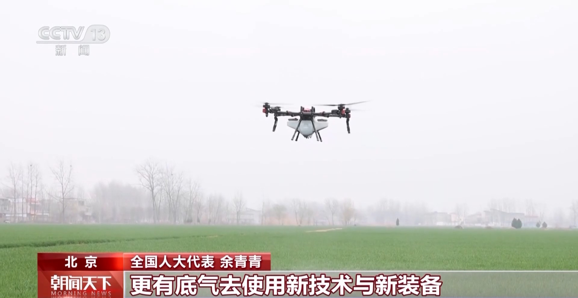 全国人大代表 余青青:现在无人机飞防是给冬小麦防虫、防病害、防冻的,在没有无人机应用的时候,这些活需要大量的人工。