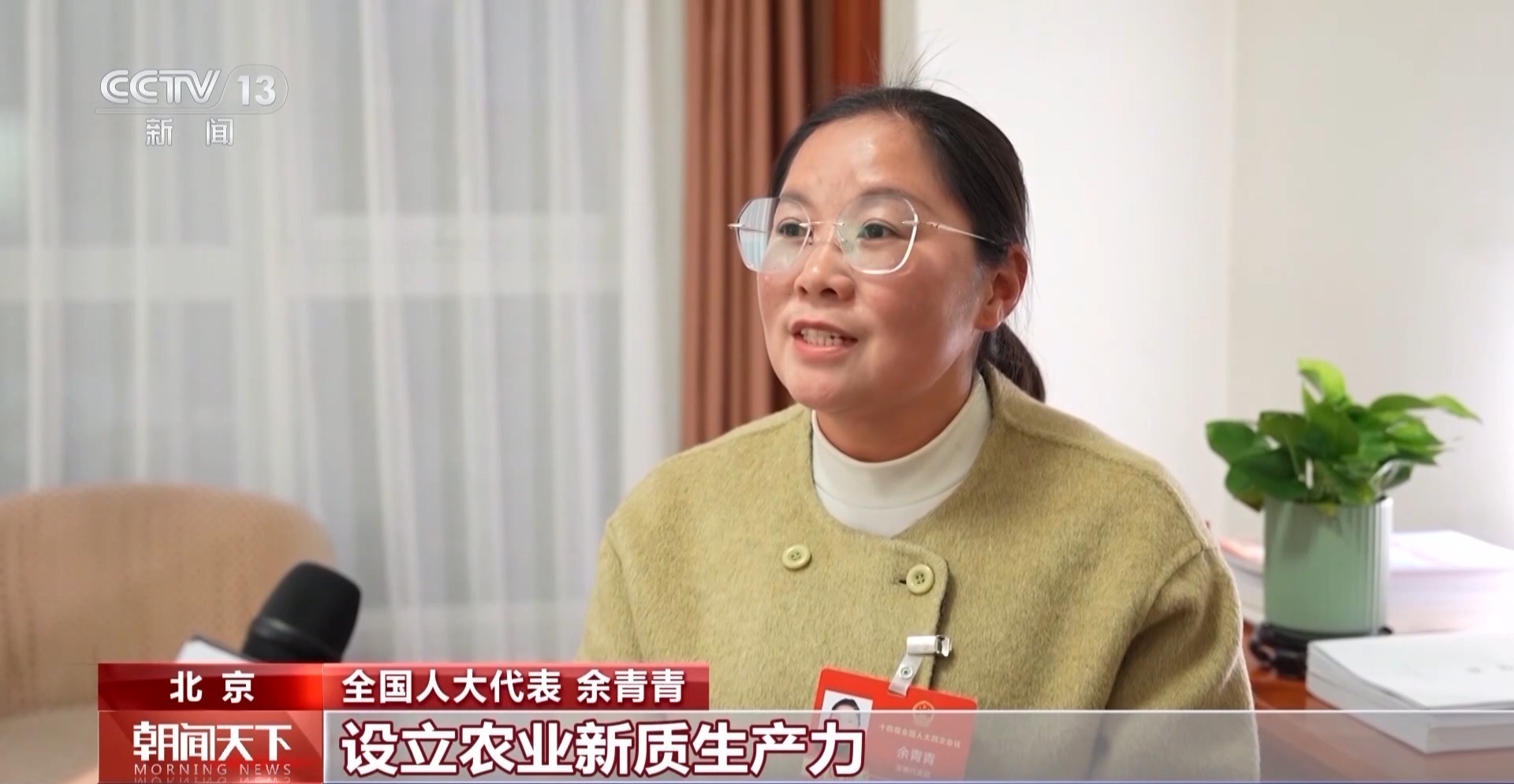 余青青把从基层了解到的实际问题认真梳理,带到了北京。在驻地,她通过与相关部门的代表进行深入交流,不断完善自己的建议方向。今年的全国两会,余青青将提出“鼓励支持培育农业新质生产力,促进现代农业高质量发展”的建议。在强化要素保障方面,她建议增强金融领域的支持。