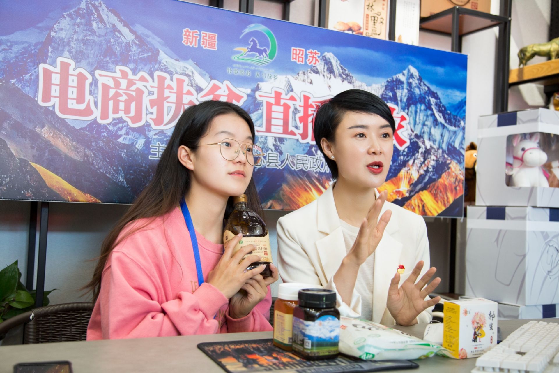 条件简陋的杂物间里,一张桌子、两个补光灯、一个手机支架,贺娇龙开始了最初的直播。昭苏县某菜籽油生产企业负责人张永成记得,一开始直播间人数寥寥无几,一天只能卖出五六单。