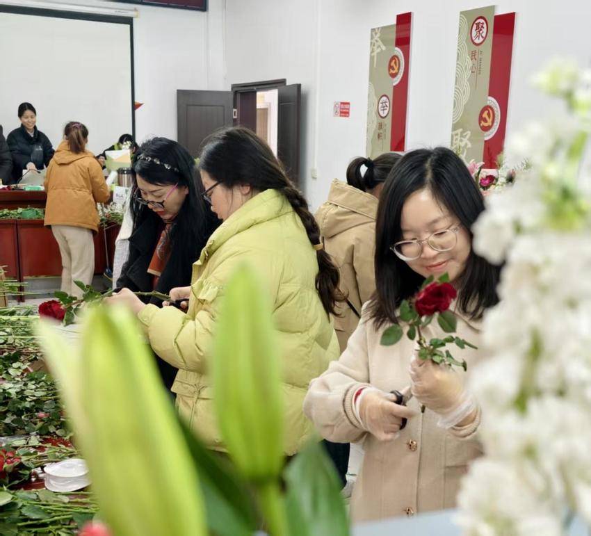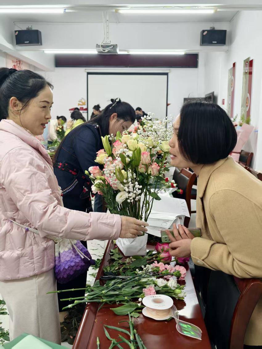 此次花艺沙龙以花为媒、以节为契,既是新时代文明实践中心丰富女性精神文化生活的具体举措,也是关爱女性、赋能巾帼的暖心实践。活动既让大家在动手实践中感受花艺魅力、放松身心,更传递了对女性同胞的深切关怀,凝聚起巾帼力量,激励广大女性以昂扬姿态绽放芳华、逐梦前行。通讯员蒋鹏飞 连青青)