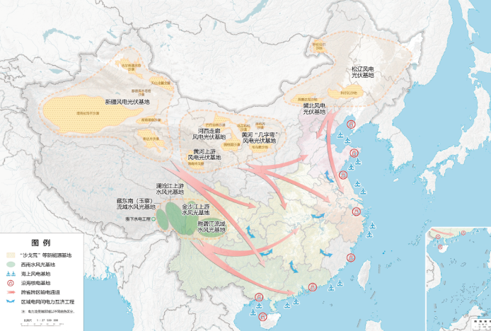 图为“十五五”规划纲要草案中的清洁能源基地布局示意图。