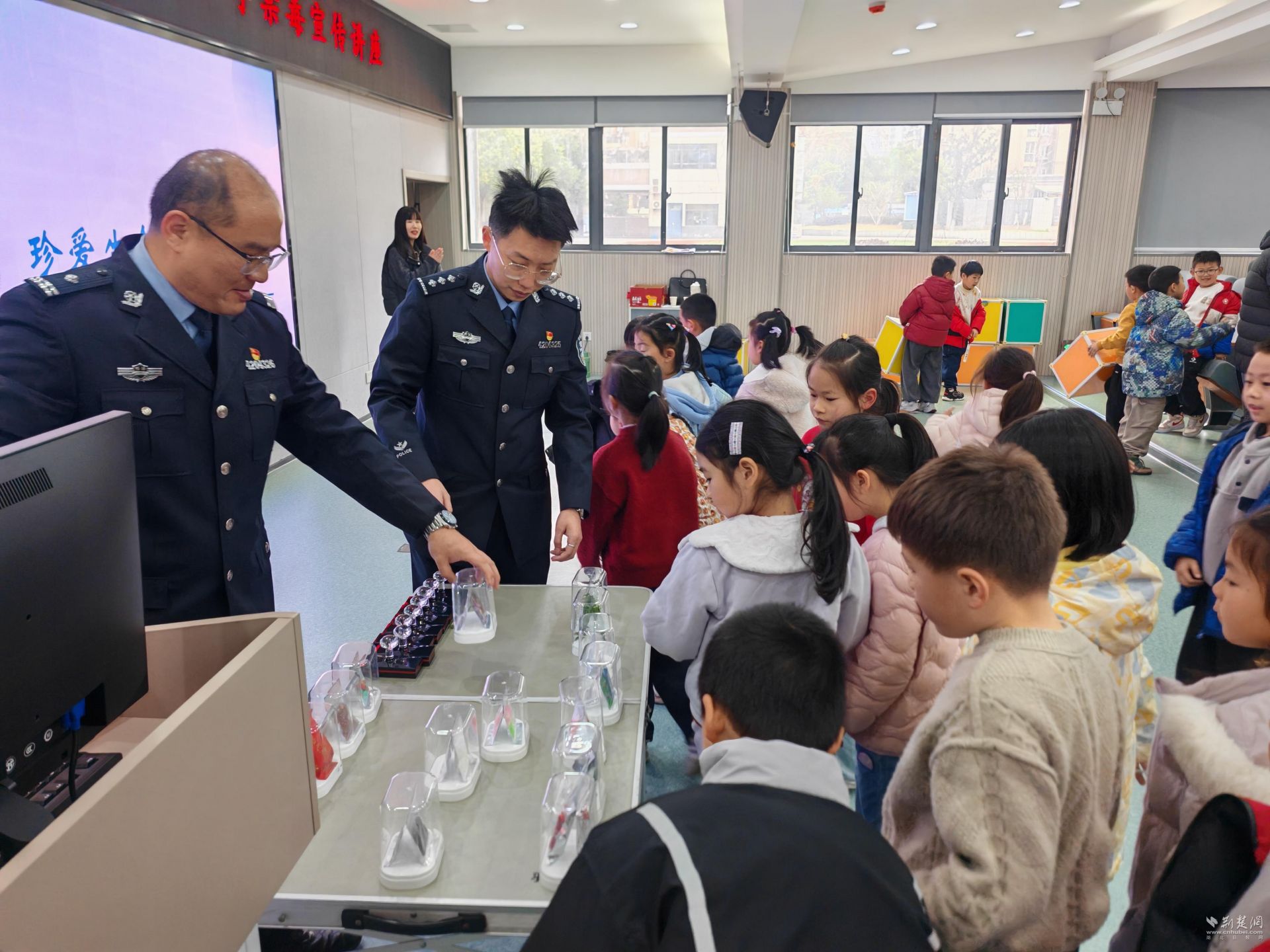 武汉市第二强戒所走进西大街小学江景园校区开展禁毒宣传。钟伟、金丰供图