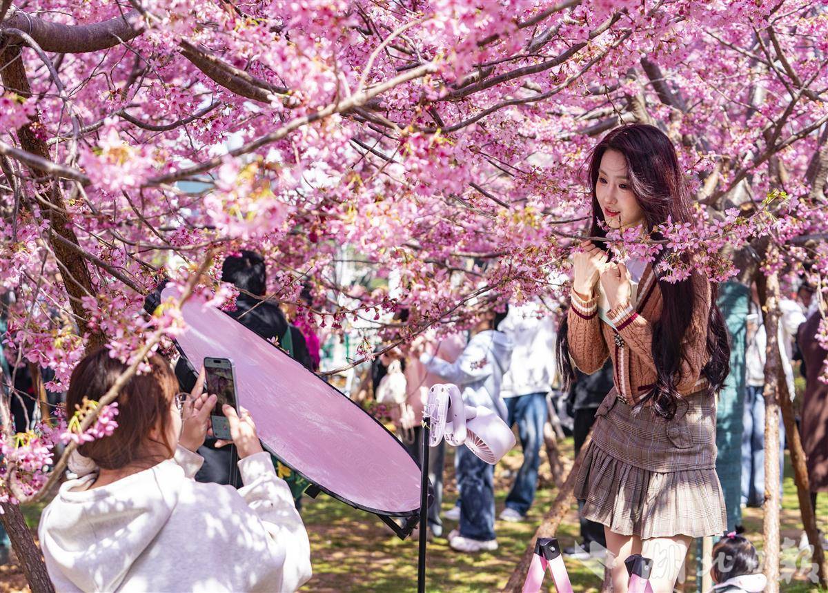 市民游客驻足观赏、拍照留影,定格江城春日美好瞬间。